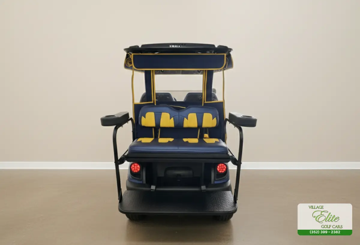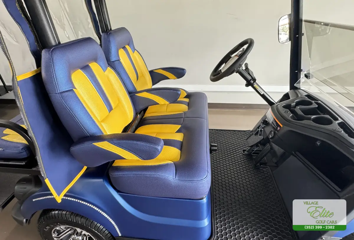 The Yamaha Blue & Yellow Golf Cart combines vibrant aesthetics with premium comfort, offering a sporty design and a smooth, enjoyable ride. The blue and yellow color scheme adds a dynamic flair, while the plush seats and high-quality build ensure a comfortable experience on and off the course. Perfect for those who love style, durability, and top-notch performance, this golf cart is an ideal choice for enhancing your golfing experience.
